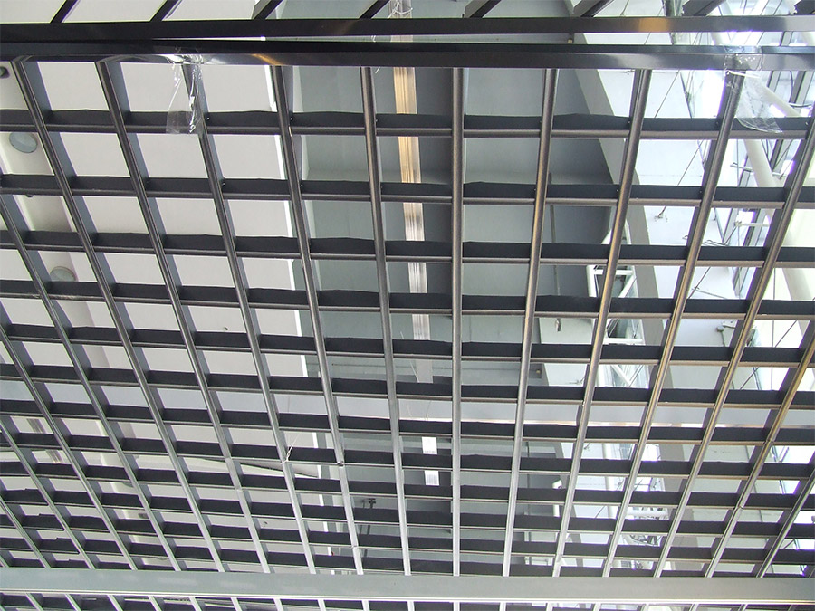 2、鋼格板作為吊頂使用,具有外形美觀、經久實用:熱浸鋅表面處理使其具有相當好的不易腐蝕能力,表面光澤美觀。